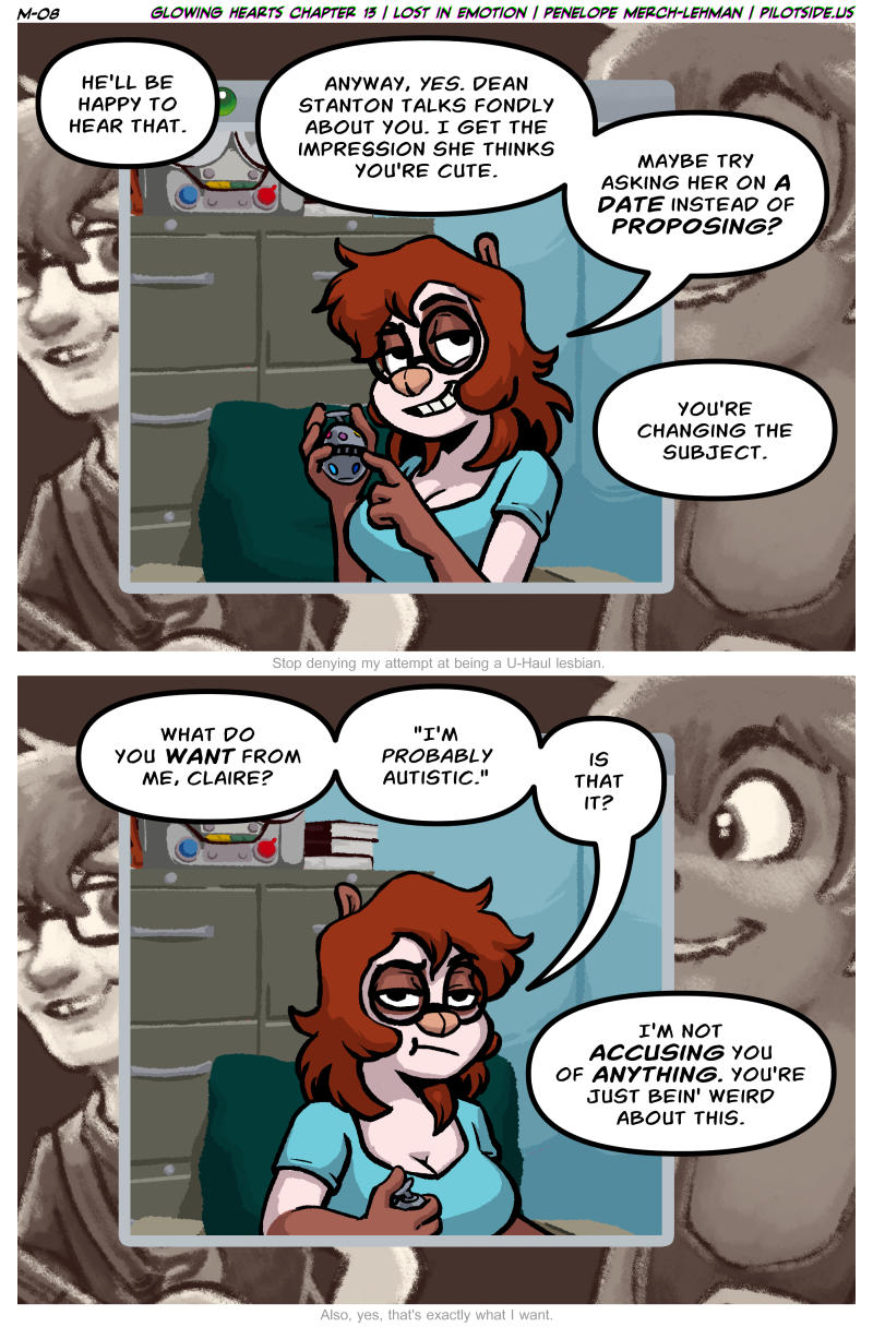 GH13M2 – An egg from an egg makes the whole world blind. Nov11 by Penelope Merch-Lehman on 2025-11-11 at 617 Chapter: 013 - Lost in EmotionCharacters: Claire Southie, Dr. Sassy Gasongas Comment
