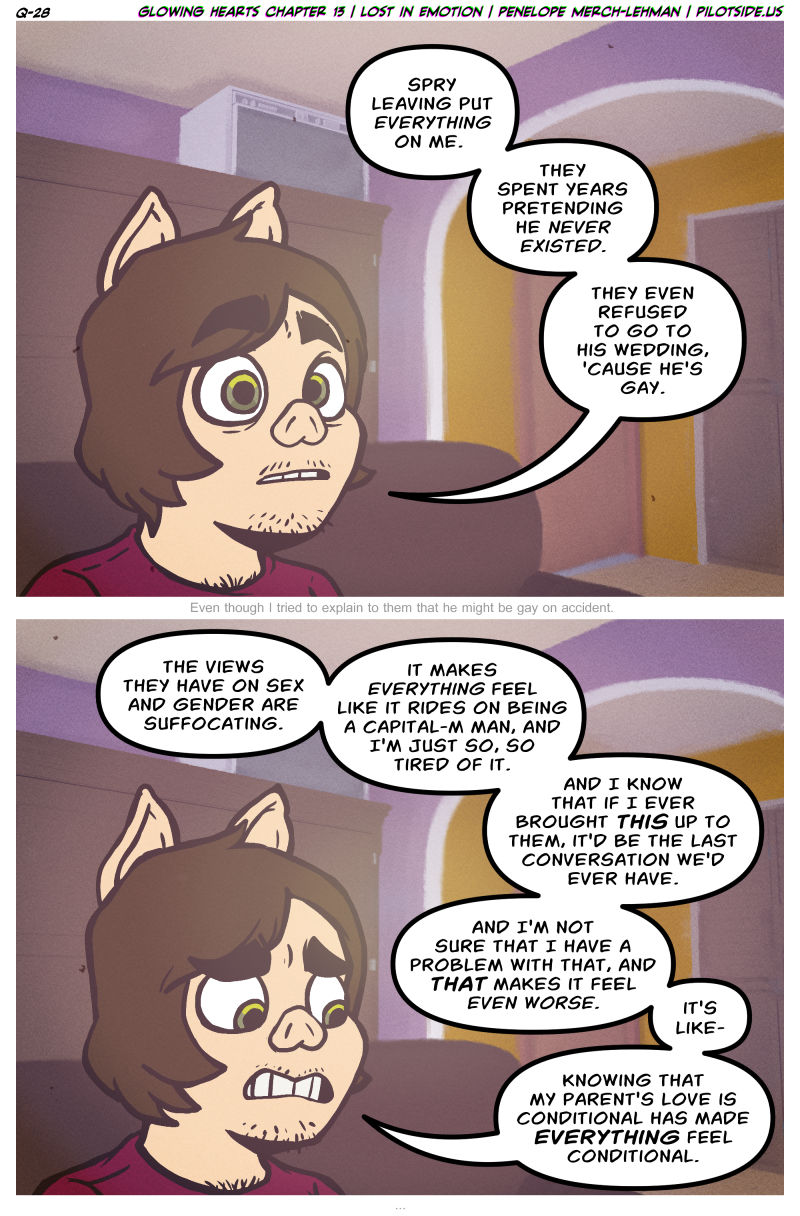 GH13Q09 – You’re Melorable Until You’re Deplorable. Apr21 by Penelope Merch-Lehman on 2026-04-21 at 943 Chapter: 013 - Lost in EmotionCharacters: Arena Babbage, Gates Darkhugs-Gasongas Comment